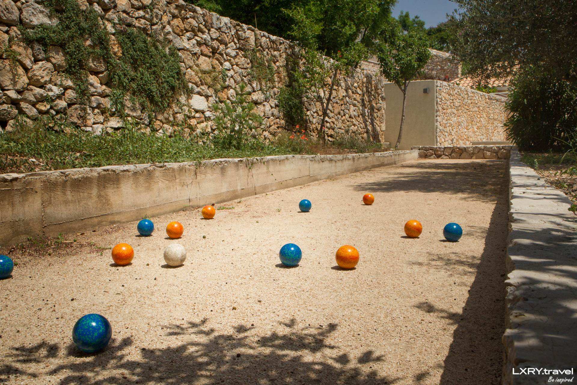 Passing the main gate, five green terraces open up on each side of the central stone staircase leading up to the master house. This is a mesmerizing view: stone-lined greens of typical Mediterranean sorts such as citruses, loquat, pomegranate and lavender. View the herb gardens and amenities like the private pool, lounge deck, bocce field, and conference room.