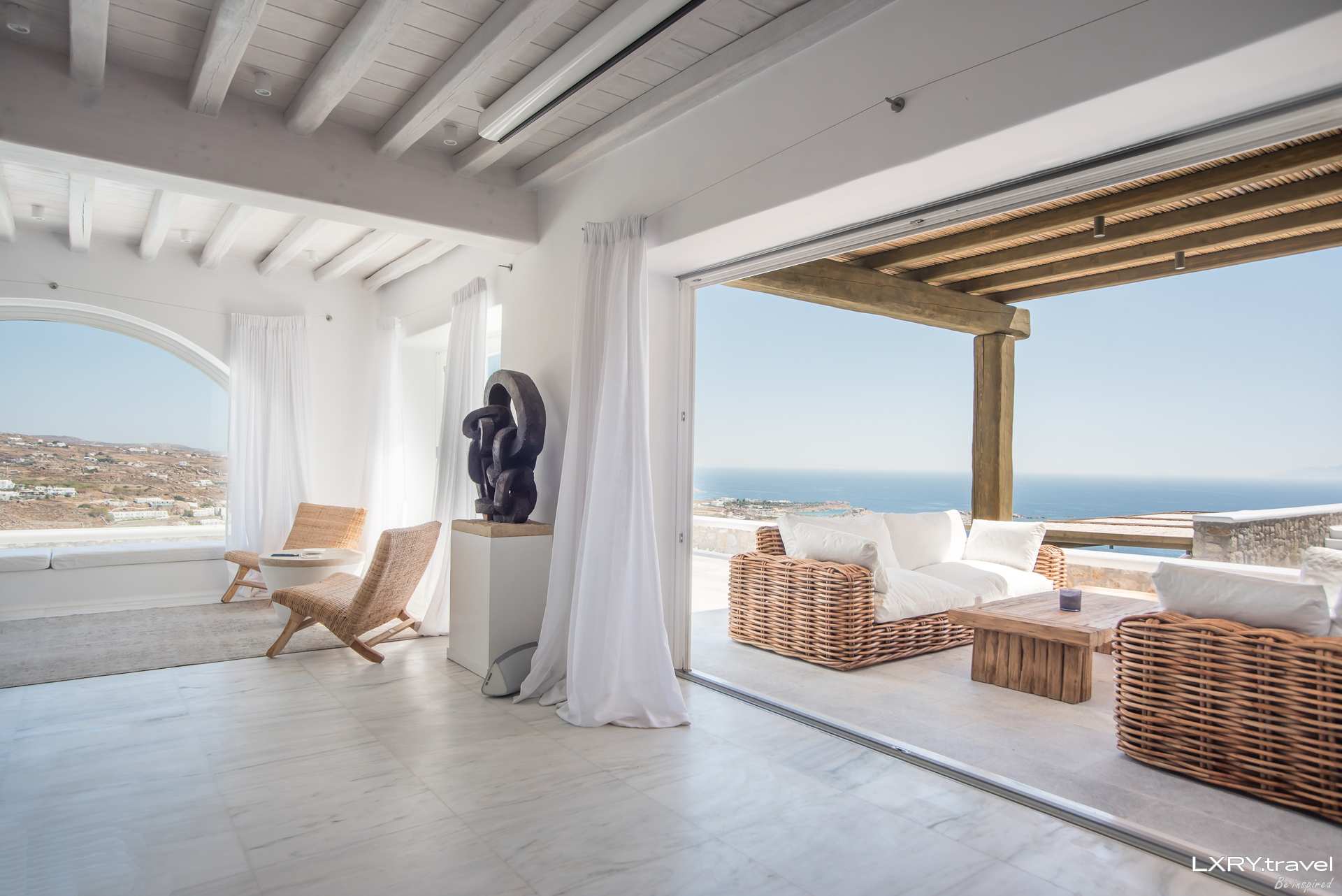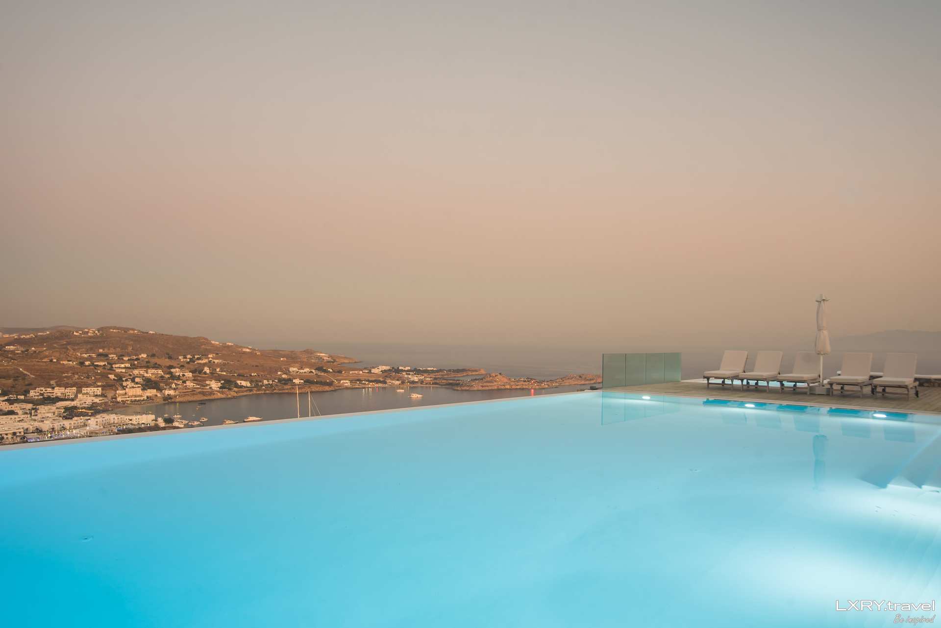 Completely secured from the winds, the expansive terrace has every feature to keep any escapist entertained; large open spaces, plenty of outdoor lounging and eating options, a massive infinity pool, a heated jacuzzi for 18, panoramic views and facilities to cater for 20 guests – what more could you wish for? Enjoy the soothing atmosphere with a drink from the pool bar and, before it’s time to get ready for the bars, take a last refreshing plunge in the pool. Mykonos awaits you to create some memories you will cherish forever.