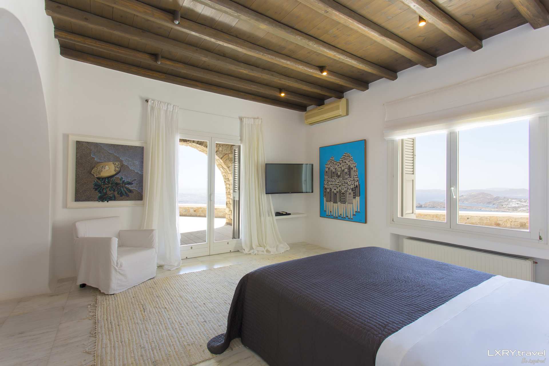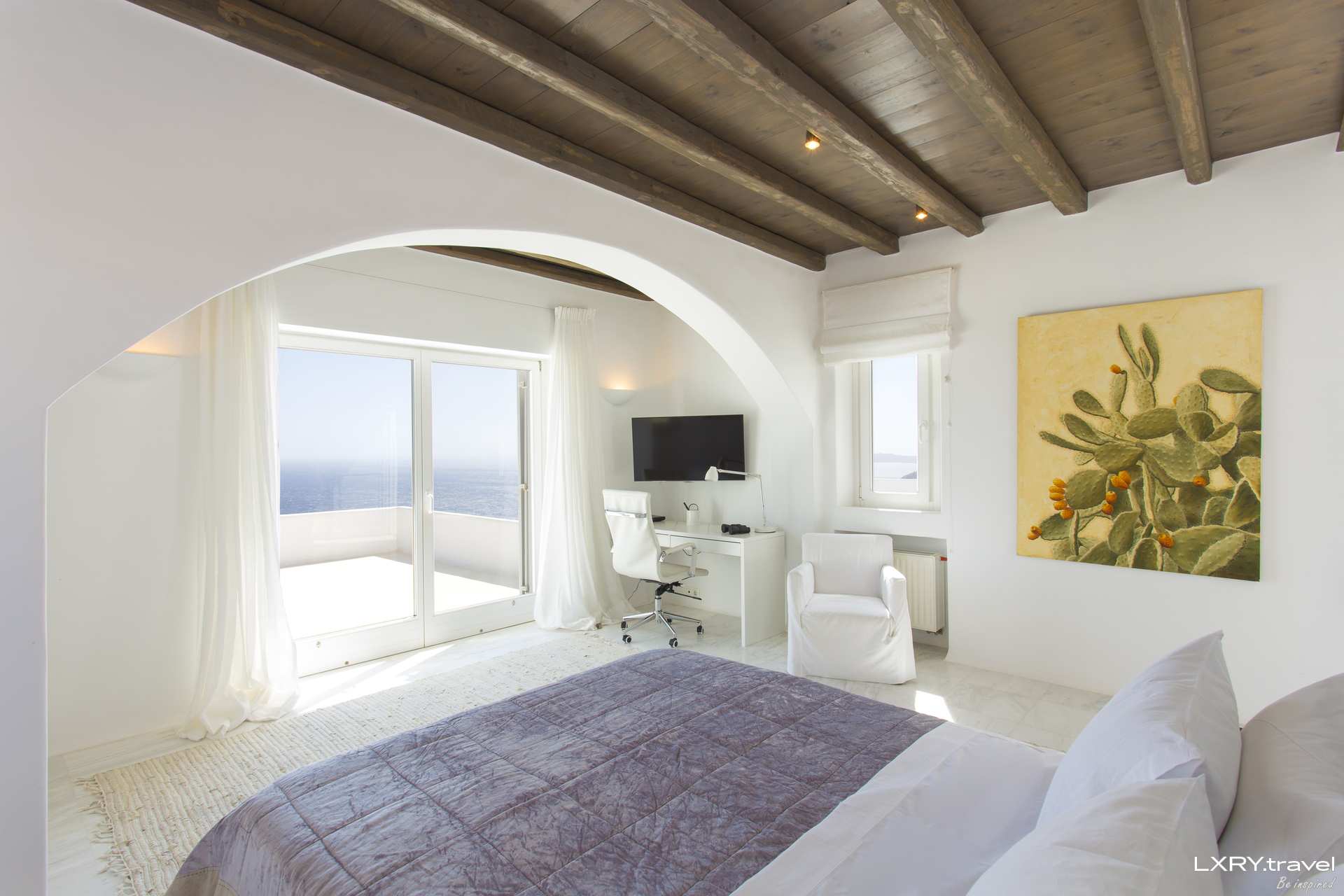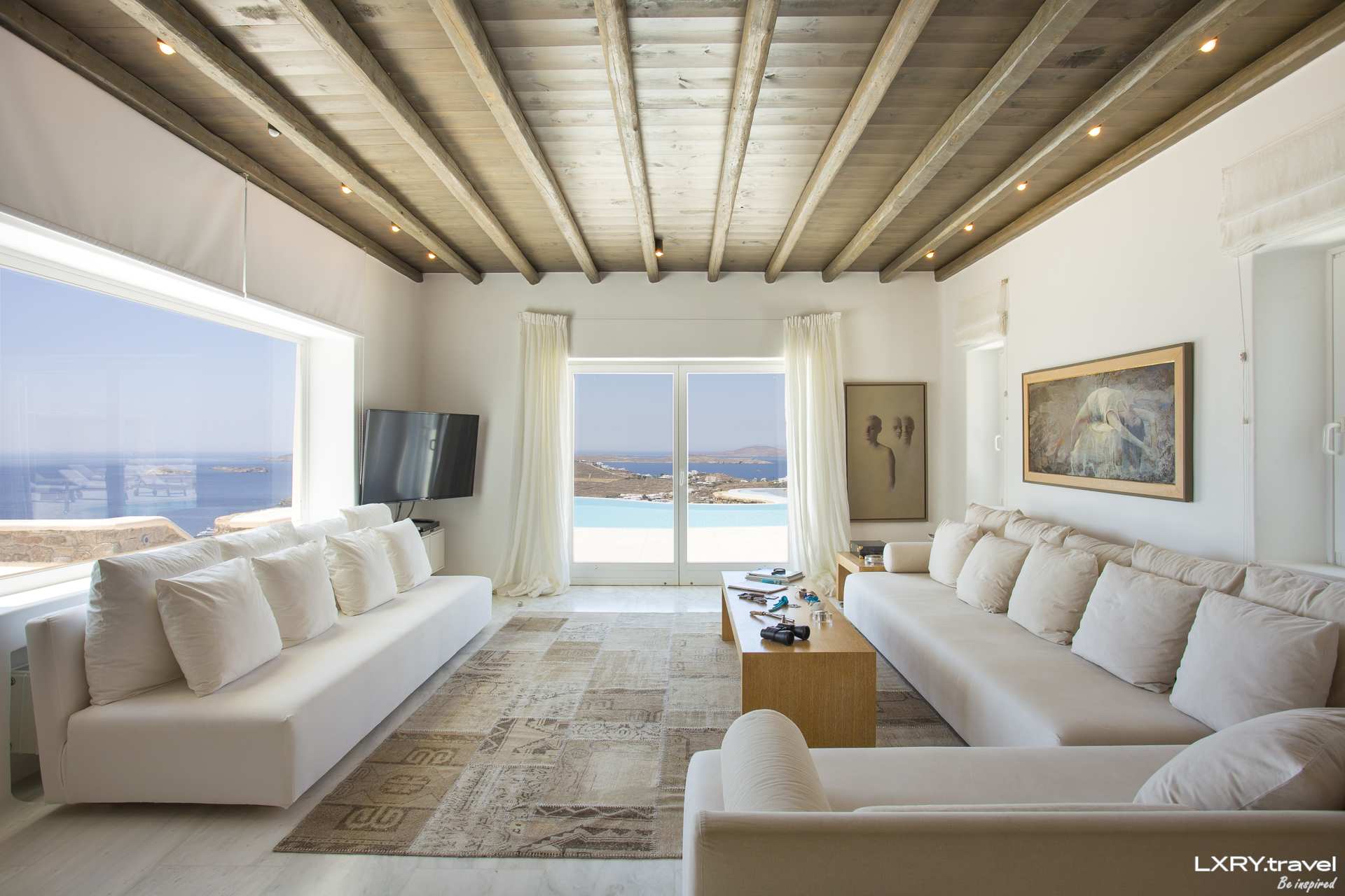 Spacious and luminous, Midas’ interiors are split in two separate buildings that are equally attracting, with picture-like windows opening onto the panoramic terraces and genuine art-filled living areas. You will be enchanted by the incomparable elegant dining area within the shades of the rough rock, which unexpectedly appears behind a glass wall. Meanwhile, you can enjoy amazing sea views from the impeccable living room, seen even while lying on every sofa. Just enjoy the experience, while you let the villa’s luxury amenities pamper you!
