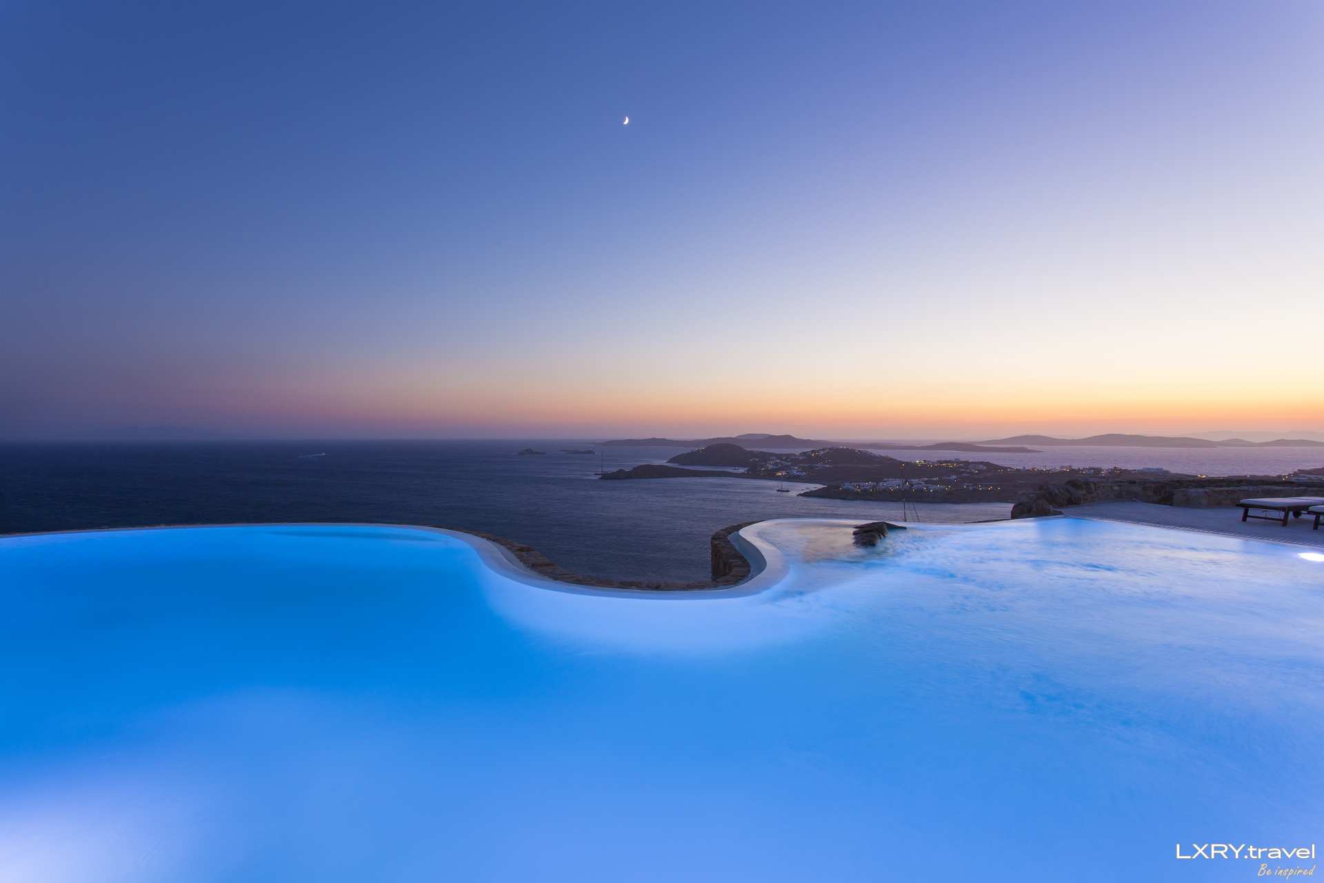 Following the clean minimal lines of local architecture, the elevated setting of the building redefines open-air living by forming extensive terraces and verandas, shaded areas and idyllic corners. The extremely large freeform infinity pool becomes part of the spectacular background; unwind and relax while you enjoy your stay sunbathing all day, feeling the breeze on your skin and the freedom of a splendid private world.