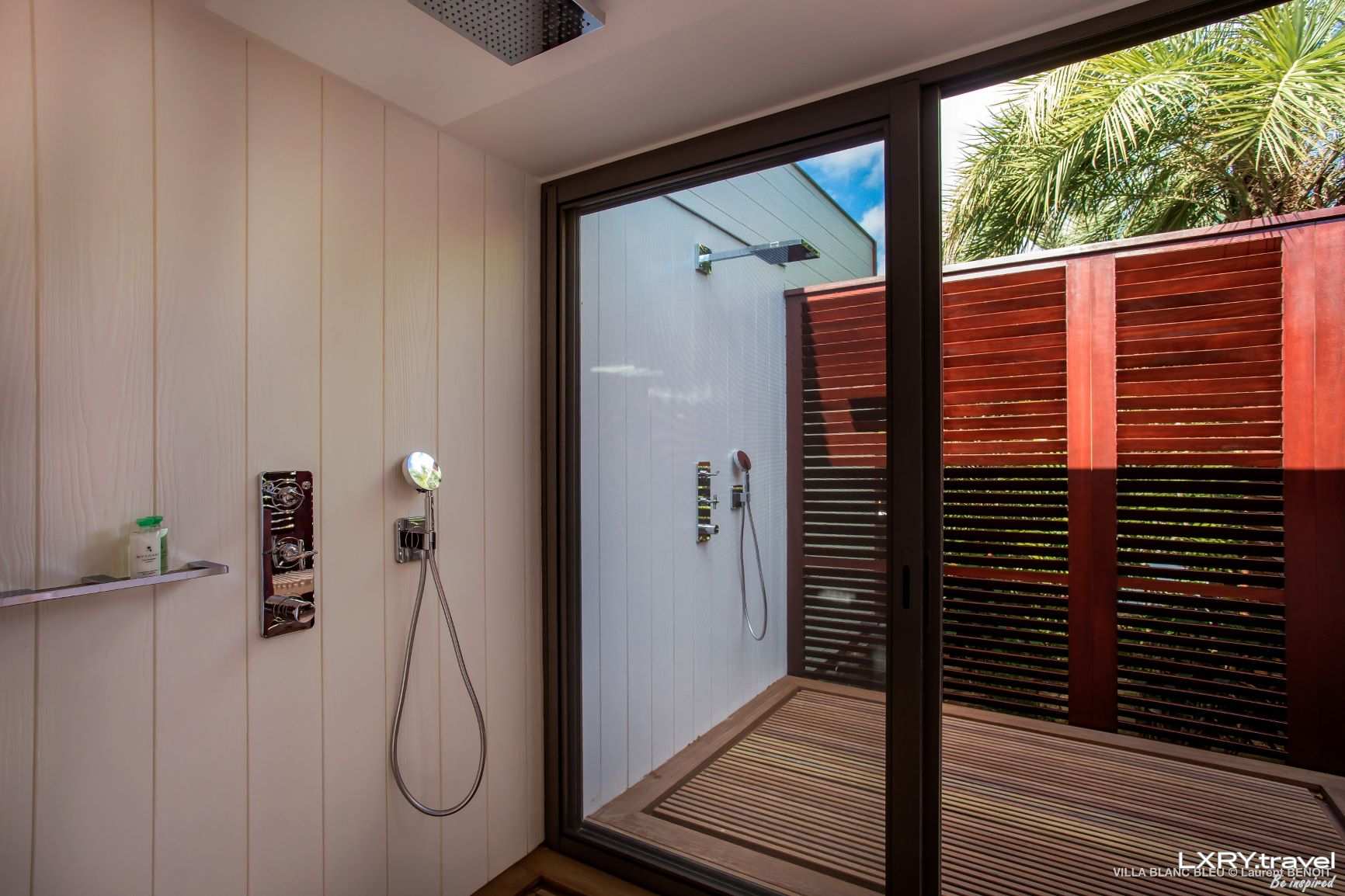 On the upper level, the fabulous master suite, with an outside lounge area on the private terrace.