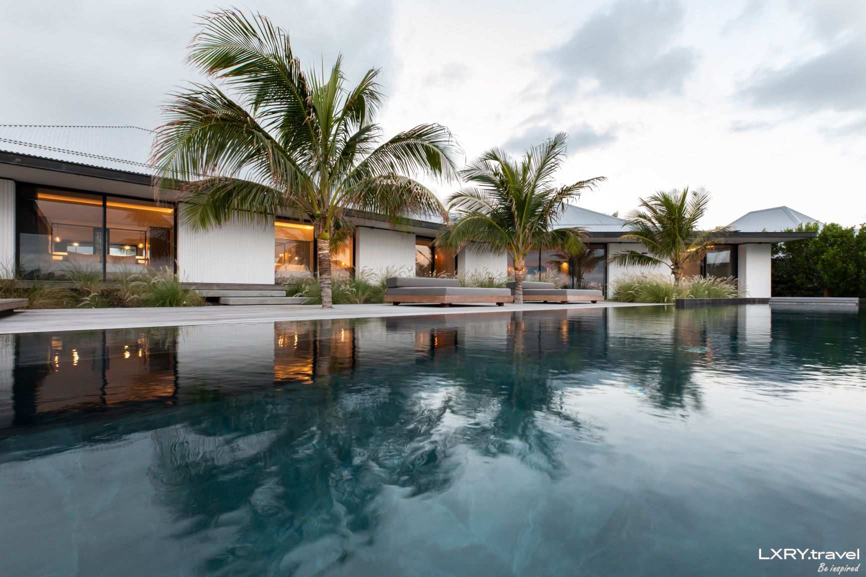On the outside a spacious living space and with a big swimming pool.